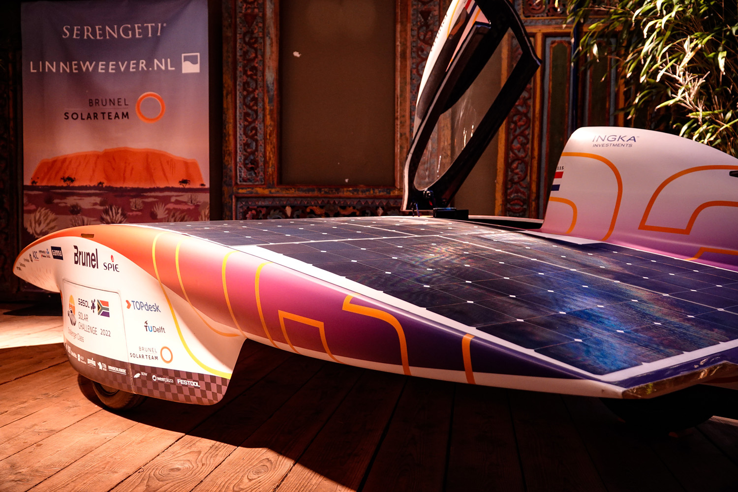 ‘Net als ieder jaar brengen zij de Nuna 12 mee zodat je in de winkel van dichtbij kunt zien hoe zo’n volledig op zonne-energie rijdende auto eruitziet en aan welke voorwaarden deze auto’s moeten voldoen’, aldus Ernest Linneweever die uiteraard de volledige collectie van zonnebrillenmerk Serengeti tot zijn beschikking heeft. ‘Het team draagt al jaren deze innovatieve zonnebrillen tot volle tevredenheid, waardoor deze iedere race weer een steentje bijdragen aan een volgende overwinning. En daar ben ik trots op’.